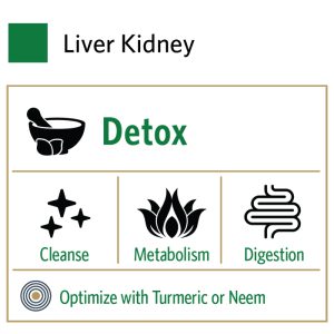 The liver and kidneys work together to eliminate toxins, cleanse the blood, and regulate fat metabolism. Organic India‘s Liver Kidney formula supports healthy liver and kidney function.